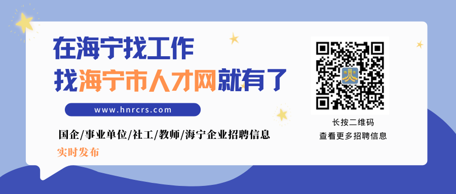 任职资格:1、25周岁-40周岁,大专以上学历,1年以上人事行政相关工作经验;2、熟悉海宁本地各招聘渠道并能独立开展招聘工作;3、熟练操作Excel、Word等办公软件;4、较强的责任心,较好的沟通能力,做事主动、细致,条理清晰;工作时间:8:00-17:00,单休,...