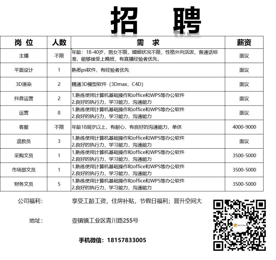 2、高中及以上学历,能熟练使用办公软件,有相关工作经验优先。