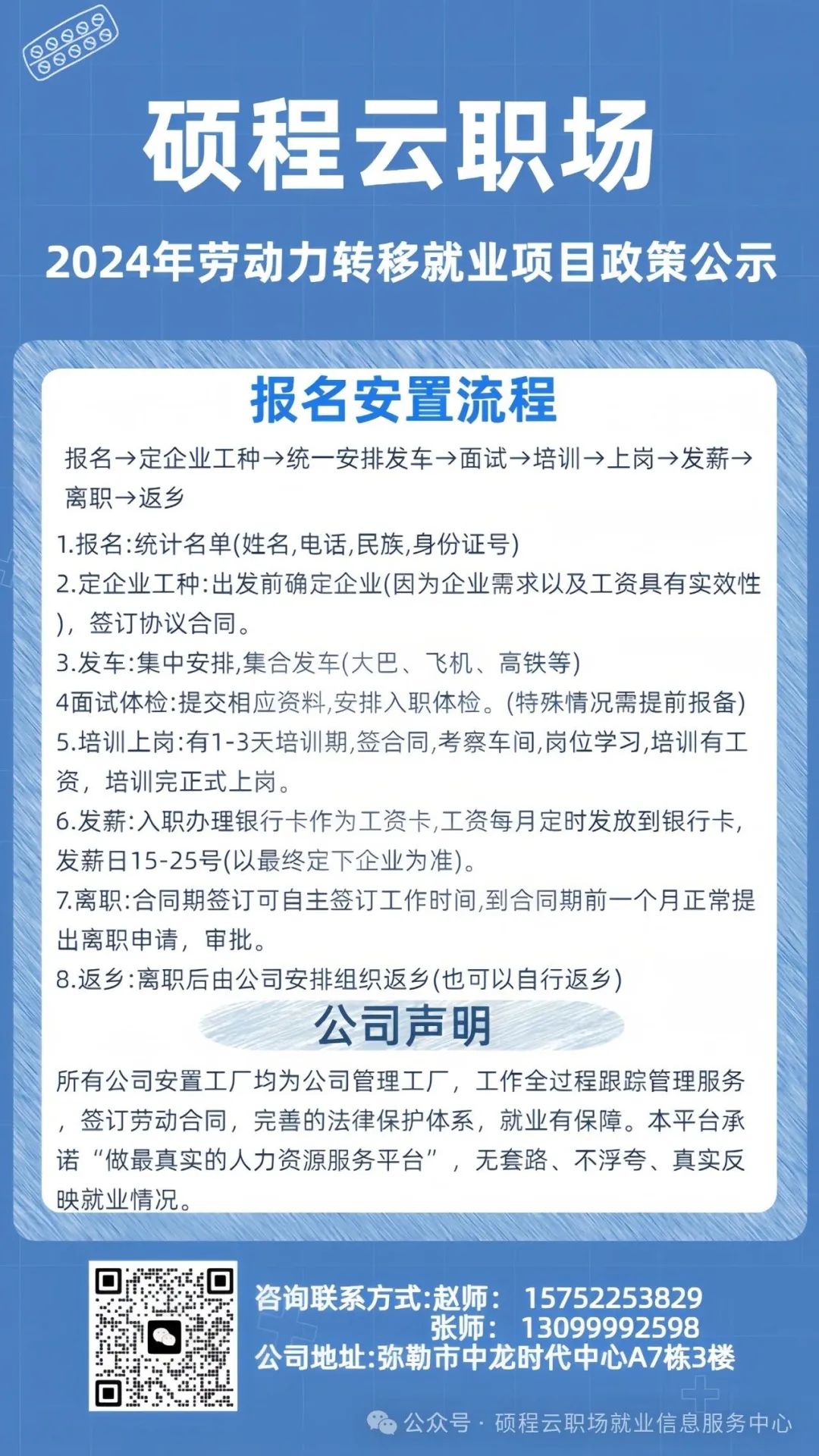 【职位要求】:男 16-57 岁,女 16-55 岁,纹身长袖遮住,会识字写字,民族不限(不忌口);可接受临时身份证,小案底;吃苦耐劳,服从企业管理。