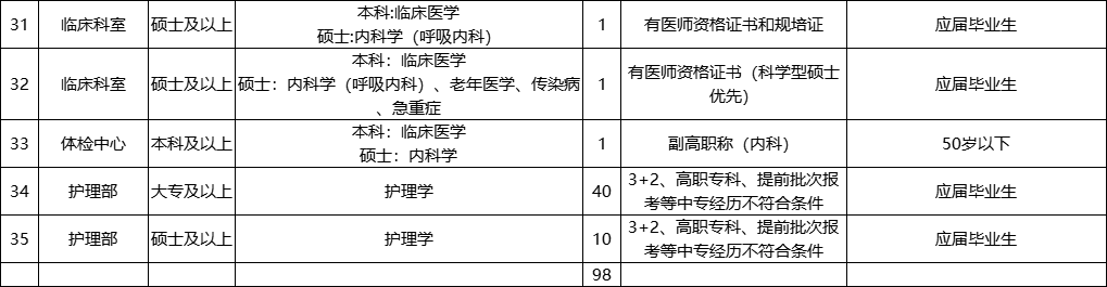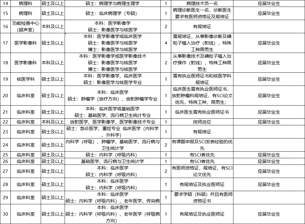 3.硕士及以上要求经国家统一硕士研究生考试入学的全日制硕士毕业生(含经教育部认证的研究生学历),第一学历为普通全日制统招5年制/4年制本专业或临床类本科,有学位证书,专业对口。临床类专业需有规培证。