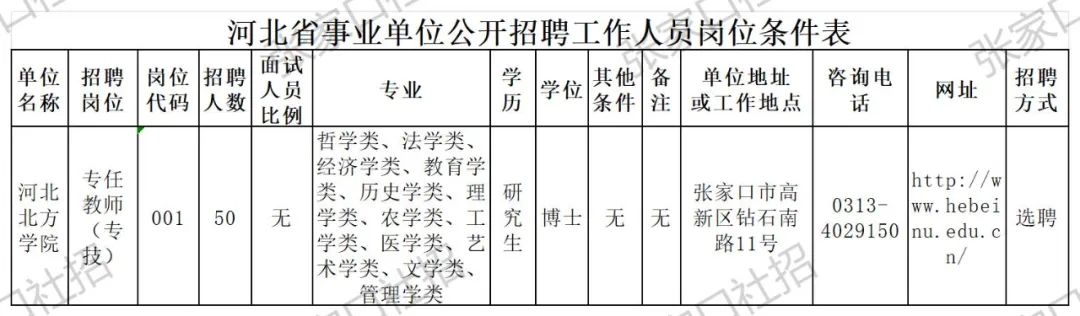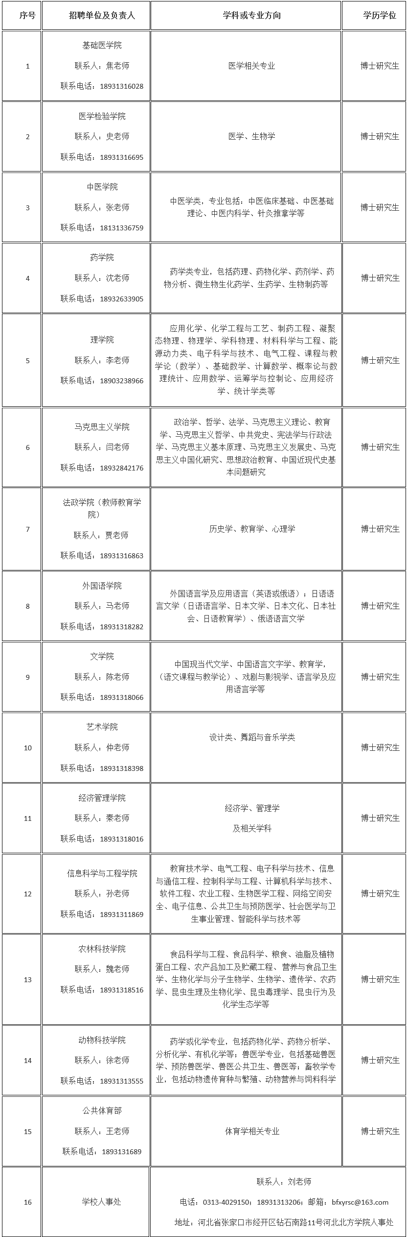 地址:河北省张家口市经开区钻石南路11号河北北方学院人事处