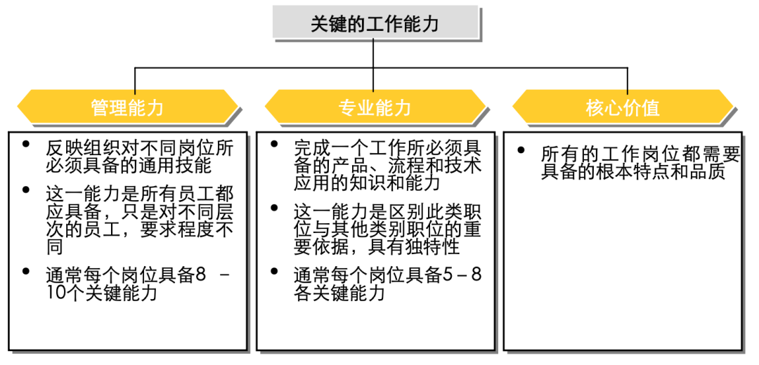 2. 绿色代表该岗位在职人员表现优秀,红色代表该岗位任职人员需要替换或在岗观察。1. 人才预警:工程部经理任职状态为“3/C”(胜任力表现一般,并且不具培养潜力), 而该岗位无继任人选,因而需纳入人才预警系统,招聘部门和分公司总经理需重点关 注,并采取措施。2. 人才培养责任预警:办事经理能力和发展潜力都很好,并具备晋升到更高职位或轮岗 到其职位发展的能力,但由于没有培养出合格的继任者,因此很可以丢掉晋升或轮岗 的机会。需将此情况反馈给办事处经理,以提醒其注意培养继任者。1. 内部人才储备池:人才地图中任职状态为“1/A”、“1/B”、“2/A”(即现岗位胜任力 表现突出或良好、发展潜力突出或良好的人员),纳入上级关键职位后备人才的储备 池。2. 管理培训生:每年有计划地从高校招收优秀应届毕业大学生,并对有管理能力潜力或 特质的毕业生,纳入管理培训生范围,并在半年后帮助其设计职业发展规划,尽而对 其进行有计划的培养。3. 外部人才储备池:发展比较快的战略业务单元(SB)、或即将新增的战略业务单元, 即懂管理又有专业能力的复合人才和专业人才通常需求比较大,对该类人才通常会集 聚在相关行业的几家优秀的企业之中,这几家企业相关人才的联系方式、职务、能力 状态(比较粗略的了解)等信息需要掌握,以便需要是能定点借挖进而缩短人才引进 周期、提高人才引进质量、降低人才引进风险。为人力资源能力管理和开发提供衡量尺度,为人力资源管理工作从职位管理向能力 管理转变提供条件,是组织能力管理和关键人才管理工作的基础和核心工具。1. 素质模型设计方法:基于以下分析,我们在素质模型的设计方法将以战略演绎和职位分析为主、关键事件访谈为辅:a) 组织和员工的技能必须与企业的策略发展紧密结合,以加强我们达成目标和绩效的能力,因此素质模型设计必须承载企业战略对相应职位的要求;b) 相同职位上的人员绩效表现存在差异,绩优者所具备的特质,是人才选拔、培养应该关注的内容。a) 通用能力指标:每一个工作都必须具备某些专业和管理的技能,某些技能会被应用到所有的岗位,如沟通能力。b) 关键工作能力指标:每一个工作都能分解成很多细化的技能以达致卓越的工作表 现,但某些技能对其工作的影响会比其他技能更重要,这些技能会被称为“关键 的工作能力”。c) 能力指标及级别组合:能力和其级别应反映最优化(适合)的工作要求,某些员 工可能具备比工作岗位所需要的技能和级别更广和更高。7. 设计关键职位素质模型,与职位分析相结合。如,专业能力设计思路如下:案例,某公司销售与市场(属于专业能力类别)在几个相关职位的能力配置与组合: