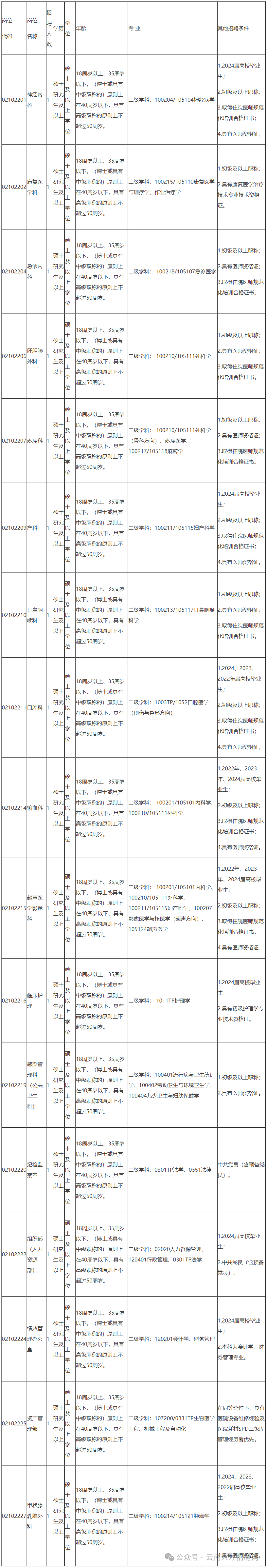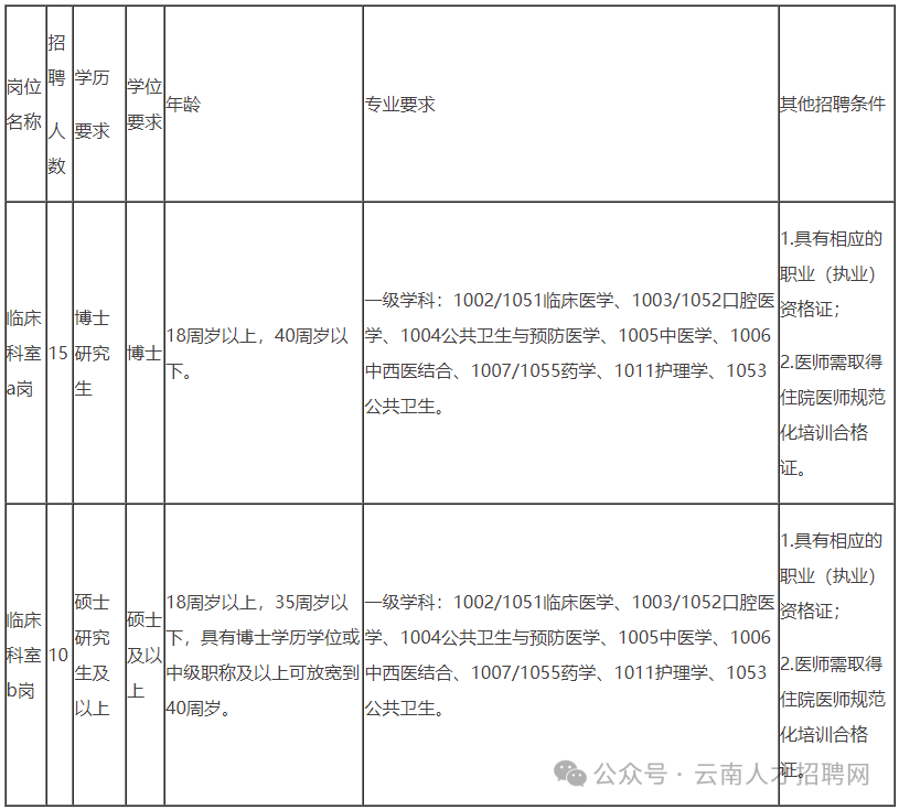 上述招聘根据《云南省事业单位公开招聘工作人员办法》(云人社发〔2016〕182号)等有关文件规定,经云南省卫生健康委、云南省人力资源和社会保障厅批准,在云南人力资源和社会保障网、云南省卫生健康委员会网站、云南卫生健康人才网均可查询相关公告,请有意者移步官网查询相关公告了解详细报名要求。