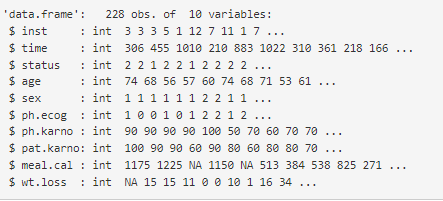 比如,我想研究肺癌患者的相关因素因素,采用Cox回归分析,采用R语言survial自带的数据集lung