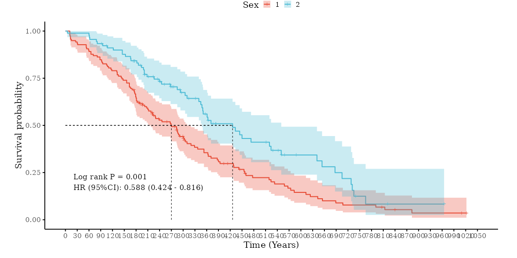 绘制生存曲线,并直接下载pdf或者高清PNG版本,生存曲线不仅直接显示P值,还显示HR 和95%CI。