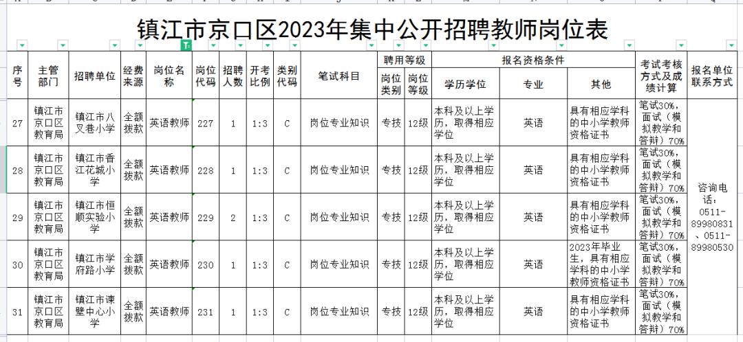 http://hrss.zhenjiang.gov.cn/hrss/kssydwkszl/202303/f128fd89d7034f2c9f53c37f3659b389.shtml报名时间、方式:本次公开招聘采用网络报名方式,报名、照片上传与审核、资格初审、缴费确认均通过网络进行。