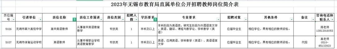 招聘岗位:公办高中英语老师专业:外国语言文学类联系人: 徐维翰联系电话: 15151107668简历接收邮箱: 286267801@qq.com
