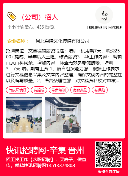 联系时请告知在快讯招聘网-辛集 晋州站上面看到的