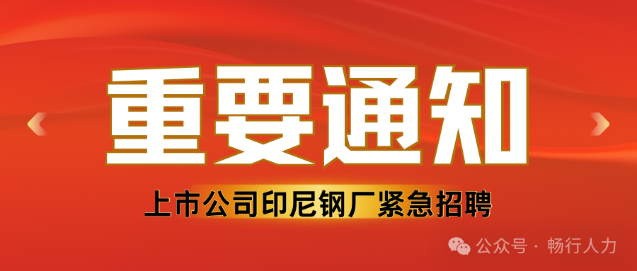 上市公司印尼钢厂正式工紧急招聘以下工种!