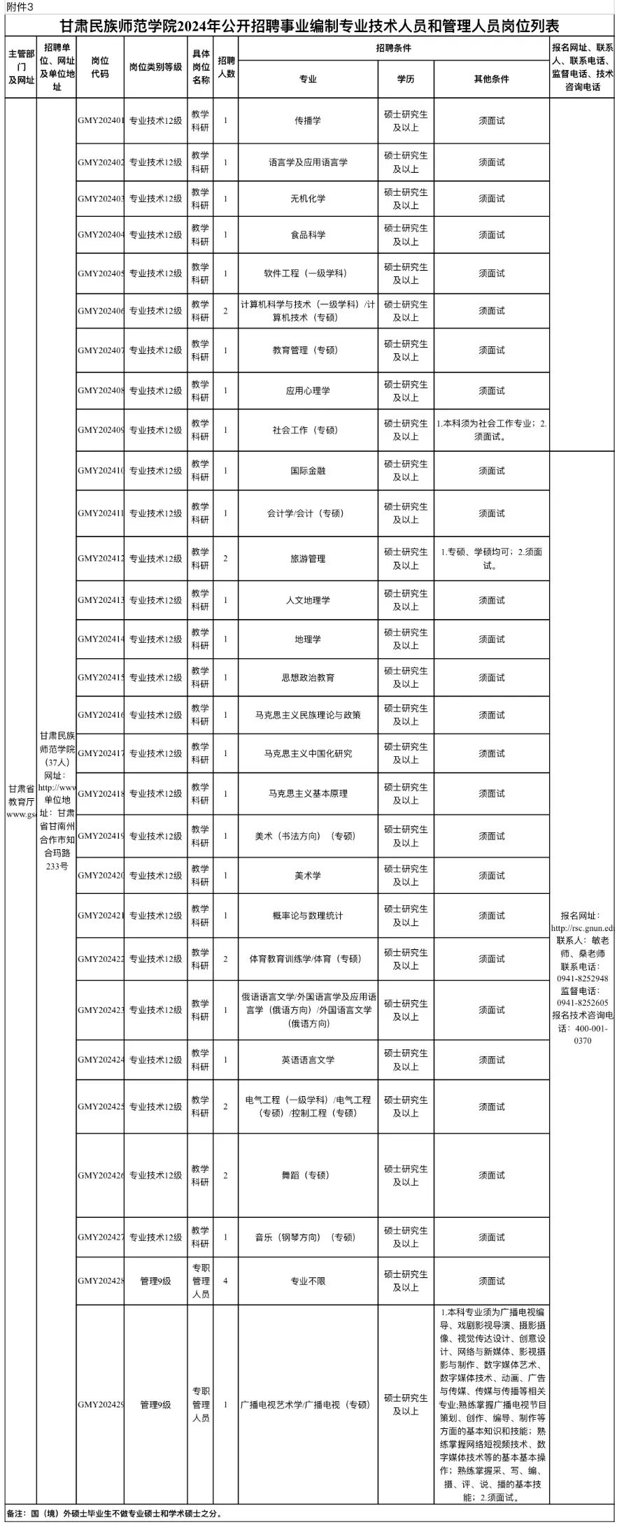 甘肃民族师范学院2024年公开招聘事业编制专业技术人员和管理人员公告