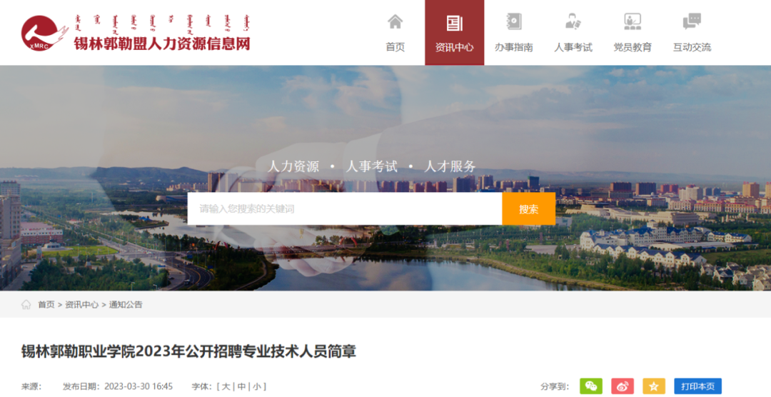 7.面试结束后,应聘人员的面试成绩在锡林郭勒职业学院官方网站(https://www-xlglve.cn/)上公布。