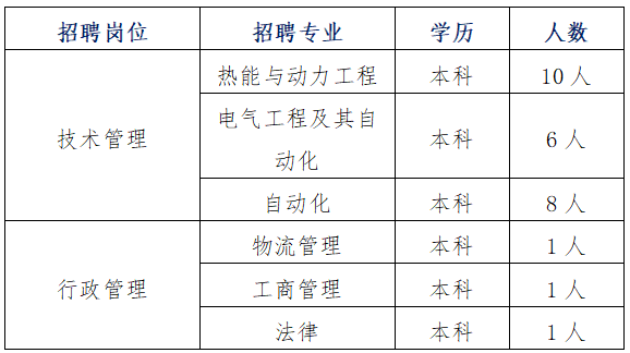 根据项目发展及未来生产需要,现面向应届高校毕业生招聘。公司为职工提供有竞争力的薪酬、福利待遇(包含五险二金和各类津贴补贴等);为职工设立广阔的晋升空间,良好的生活后勤保障。