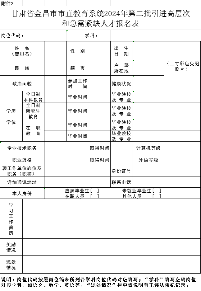 (八)有下列情形的人员不得引进:有刑事、治安处罚及失信记录的;在校就读期间受过处分的;未能如期取得相关毕业证书和成绩单的有效证明材料的,或提供虚假证件材料的;人事档案审核中发现有影响聘用情形的;金昌市机关事业单位和国有企业在编在岗工作人员;金昌市“三支一扶”、进村进社等各类项目人员;各类网络学院、成人教育学院、独立学院和专升本毕业生;其他不适宜引进的情况。