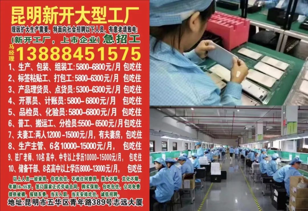 昆明新开大型工厂 急招工 工厂直招工(不收任何费用、上市企业、新开工厂、诚信招聘)