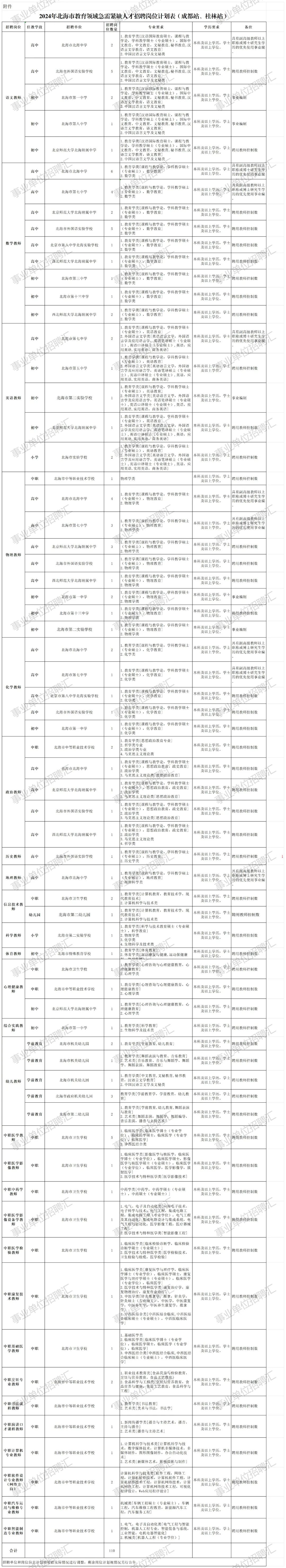 附件:2024年北海市教育领域急需紧缺人才招聘岗位计划表(成都站、桂林站)