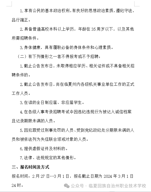>甘肃招聘 | 临夏州职业技术学校2024年任课教师招聘公告