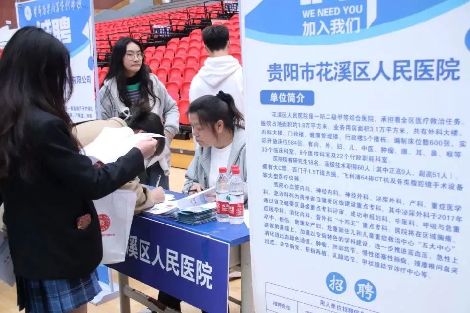 此次招聘会结合该校的专业设置和同学们的就业意向,邀请了贵阳市第二人民医院、贵阳市白云区人民医院县、开阳县妇幼保健院等35家企业事业单位进校招聘,提供120余个就业岗位。