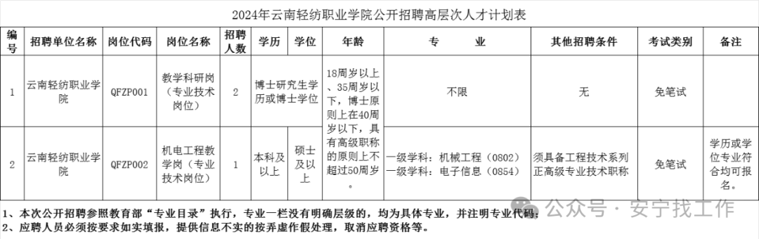 云南轻纺职业学院2024年公开招聘高层次人才公告