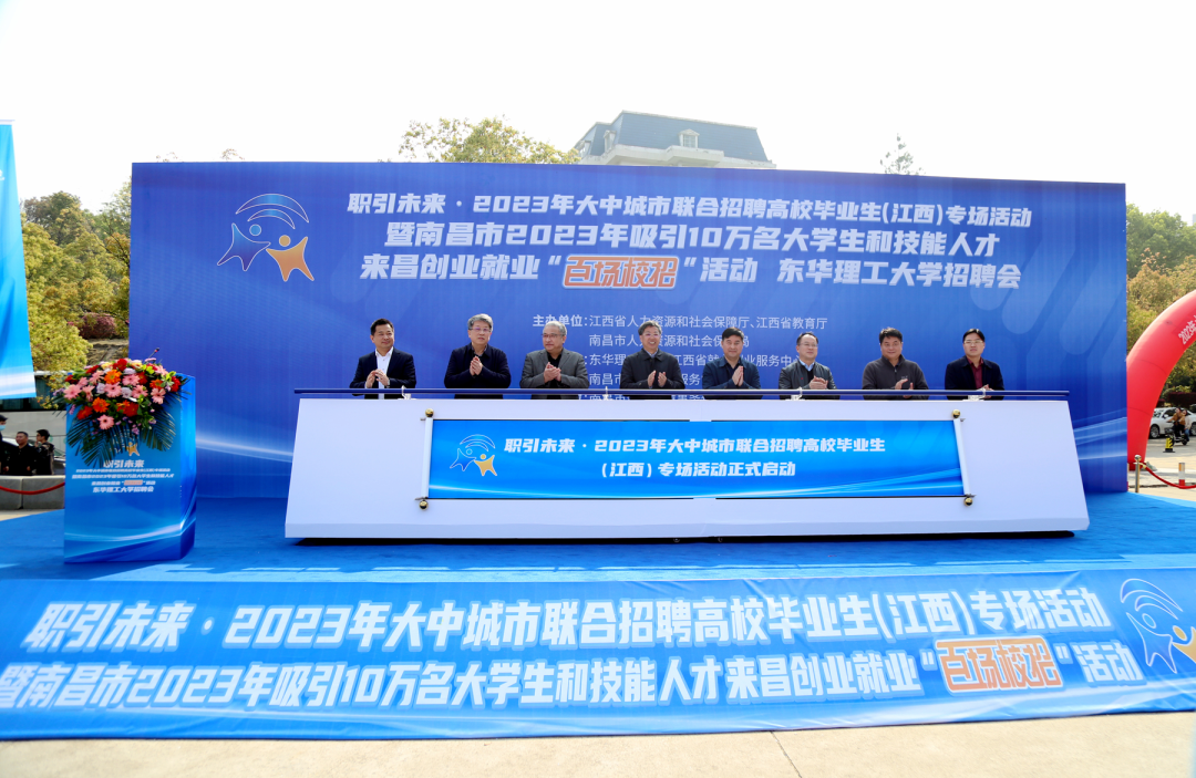 3月31日,职引未来·2023年大中城市联合招聘高校毕业生(江西)专场暨南昌市“百场校招”活动在东华理工大学广兰校区举行。这是今年南昌市高校参会企业规模最大的一场线下招聘会,旨在促进高校毕业生尽早就业、顺利就业。