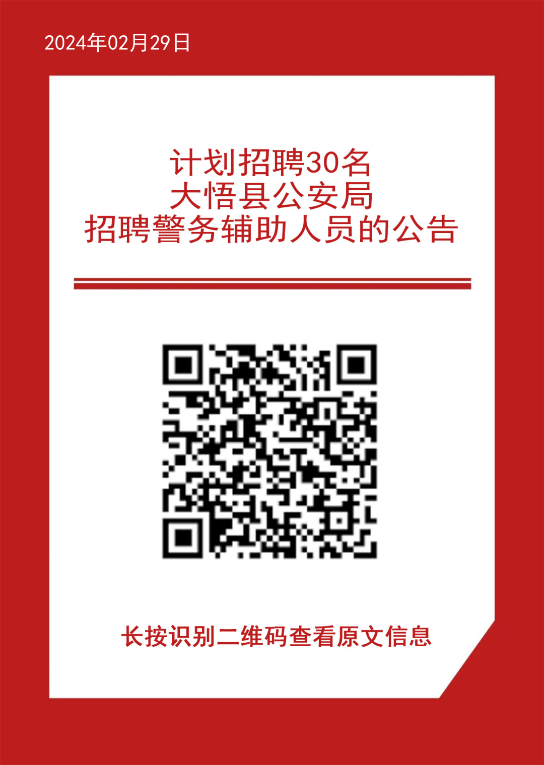 计划招聘30名,大悟县公安局招聘警务辅助人员的公告