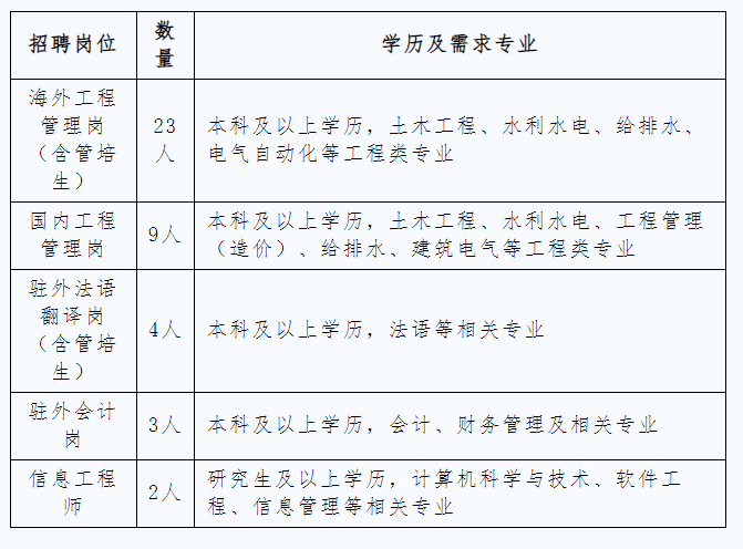 1.本科及以上学历的2024年应届大学毕业生(或境外留学回国人员)和毕业两年内未就业的往届大学毕业生。毕业两年内的有工作经验人员,如应聘海外工程管理、外语翻译、驻外会计岗位,视为应届毕业生。