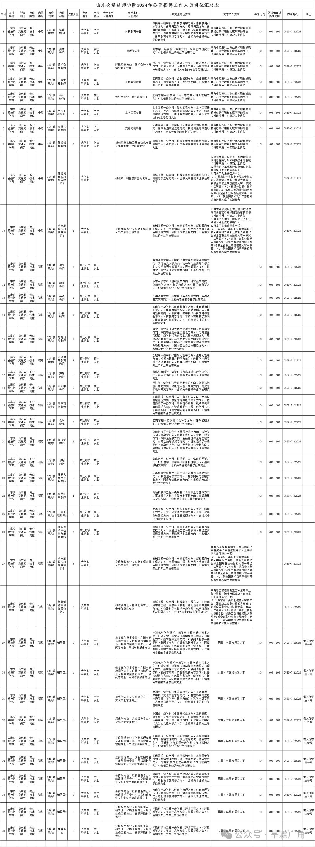 附件:1.山东交通技师学院2024年公开招聘工作人员岗位汇总表