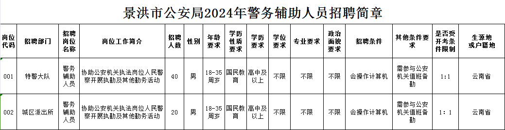 附件1:景洪市公安局2024年警务辅助人员招聘简章