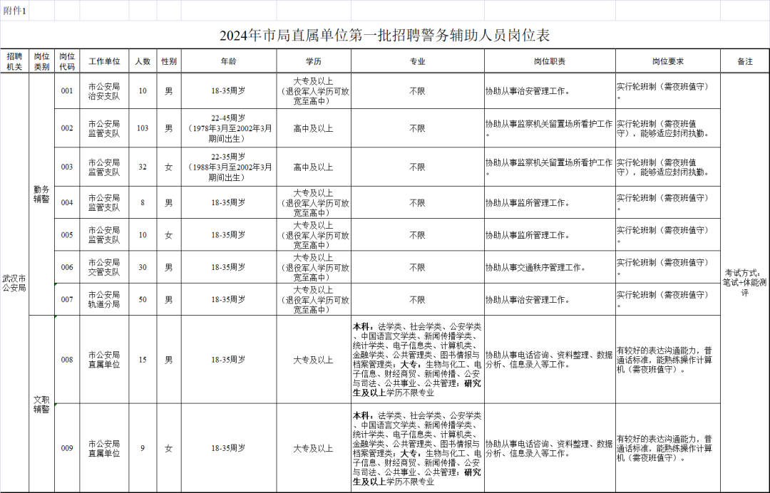 附件1:2024年市局直属单位第一批招聘警务辅助人员岗位表--.xlsx