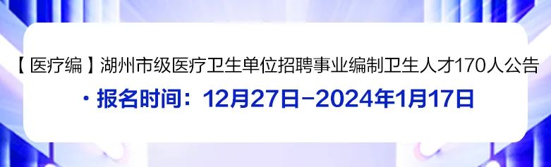 为加强湖州市吴兴区医疗卫生人才队伍建设,2023年11月21日发布了《2024年湖州市吴兴区医疗卫生单位择优选聘卫生专业技术人才公告》(具体岗位见附件),经研究,现就有关事项补充公告如下: