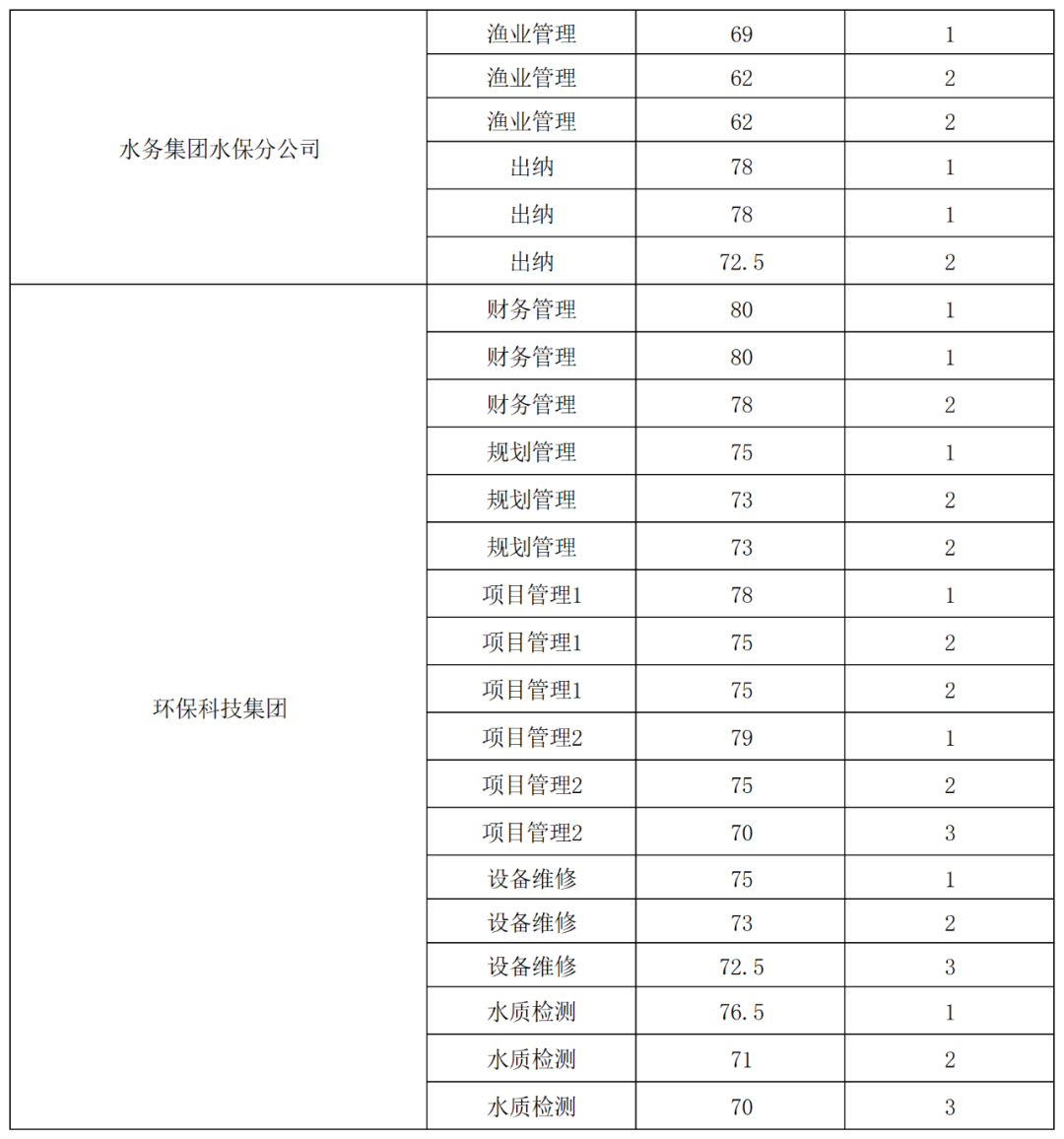 5.水务集团水保分公司:出纳岗、渔业管理岗;