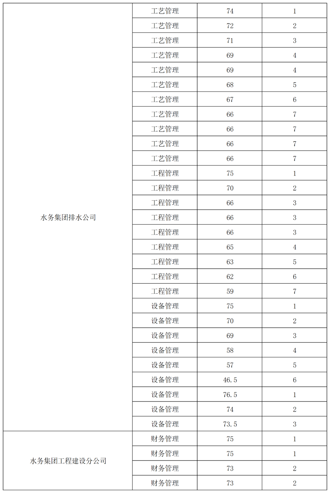 3.水务集团排水公司:设备管理岗、工艺管理岗、工程管理岗、设备管理岗(工作地点在苍南县);