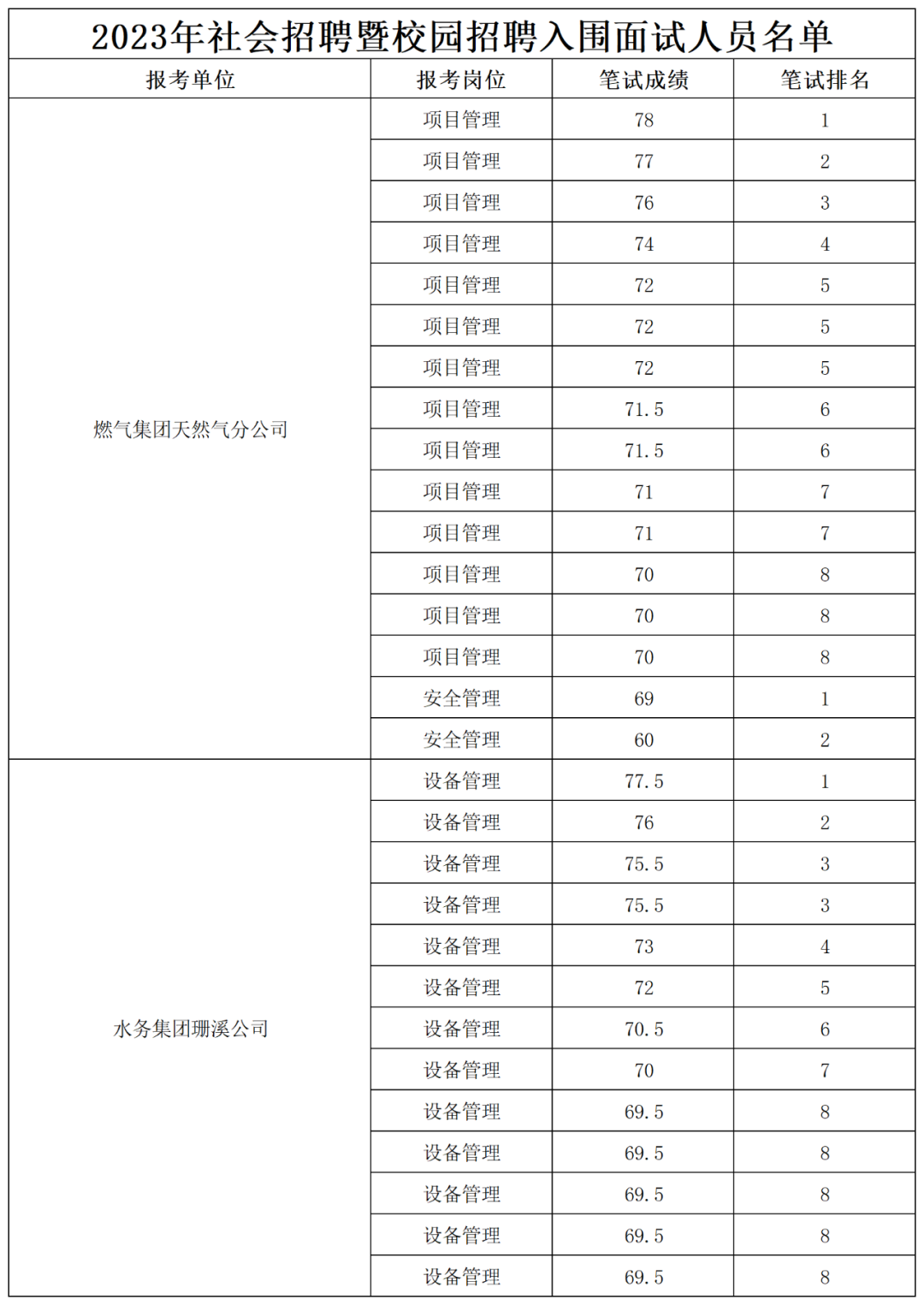 附件:《2023年社会招聘暨校园招聘入围面试人员名单》