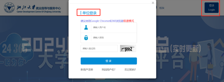 1、登录“浙江大学就业服务平台”(www.career.zju.edu.cn)。