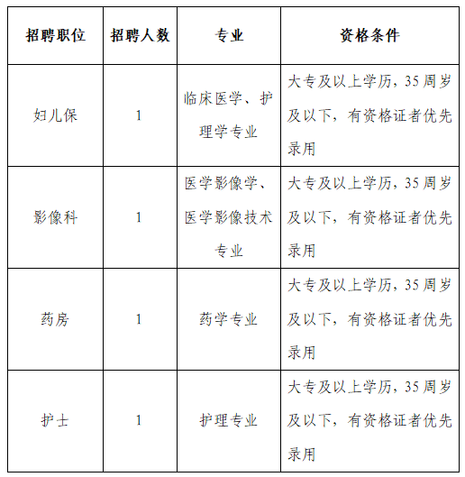 因工作需要,方桥街道社区卫生服务中心拟面向社会公开招聘编外妇儿保人员、影像科人员、药房人员和护士各1名。现将有关事项公告如下: