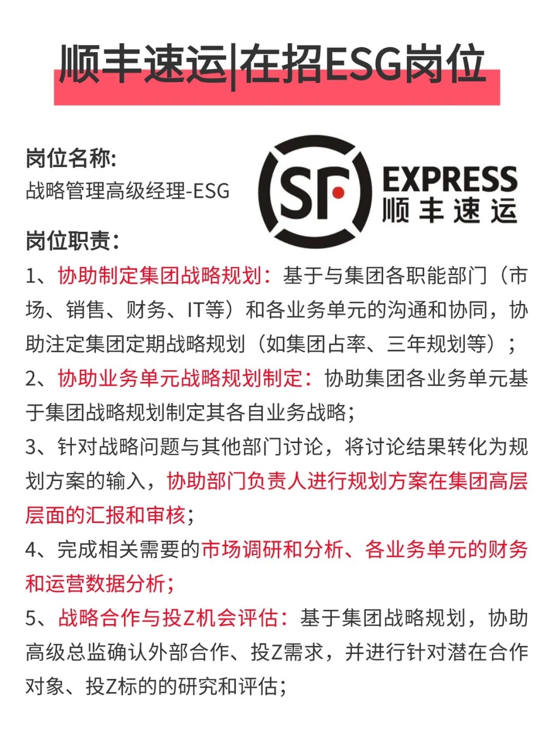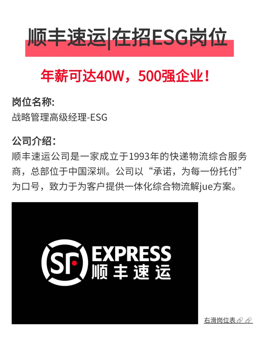 >500强|顺丰速运招聘啦!ESG岗!年薪40W!