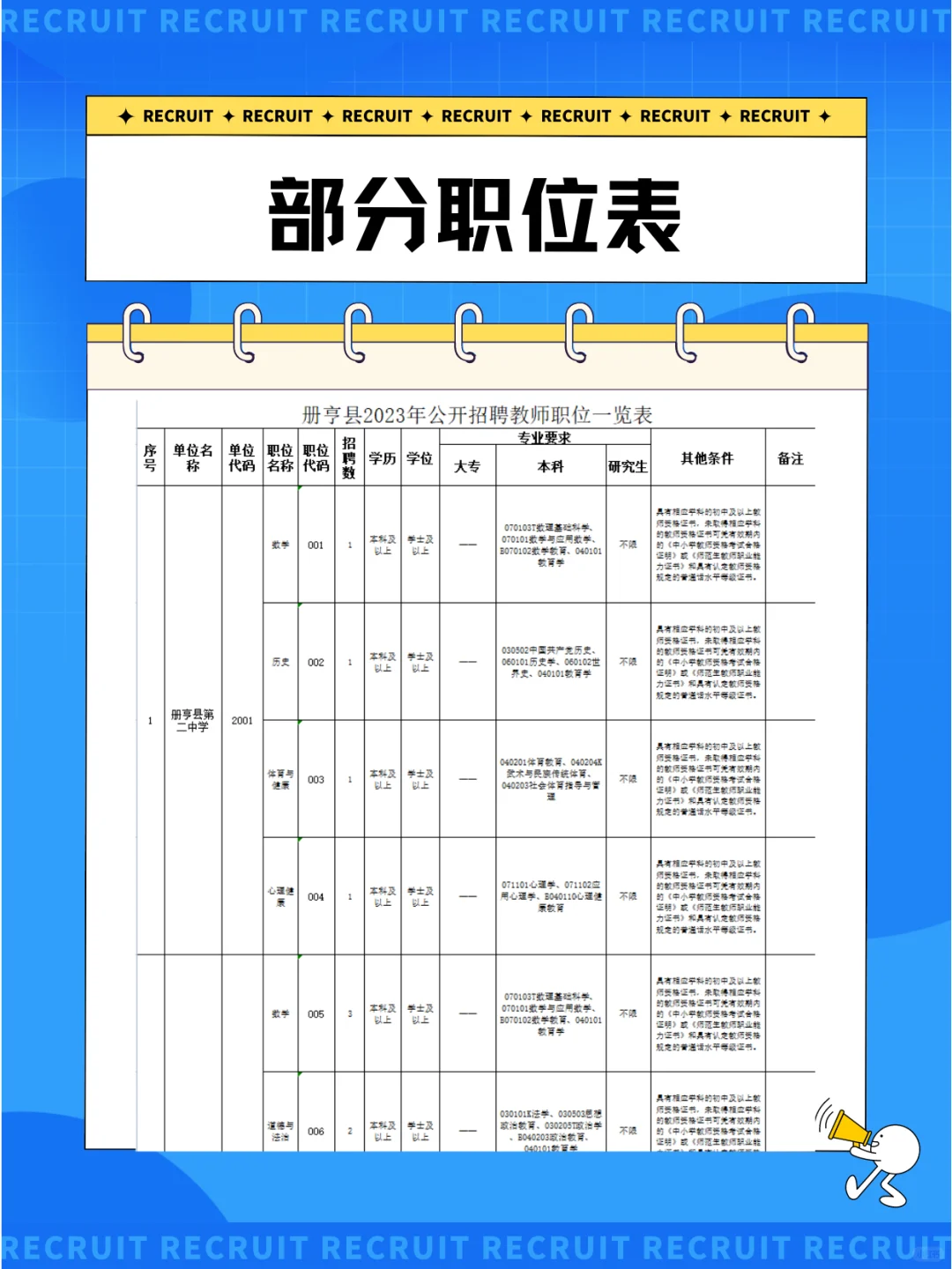 >教师招考103人,事业编哦