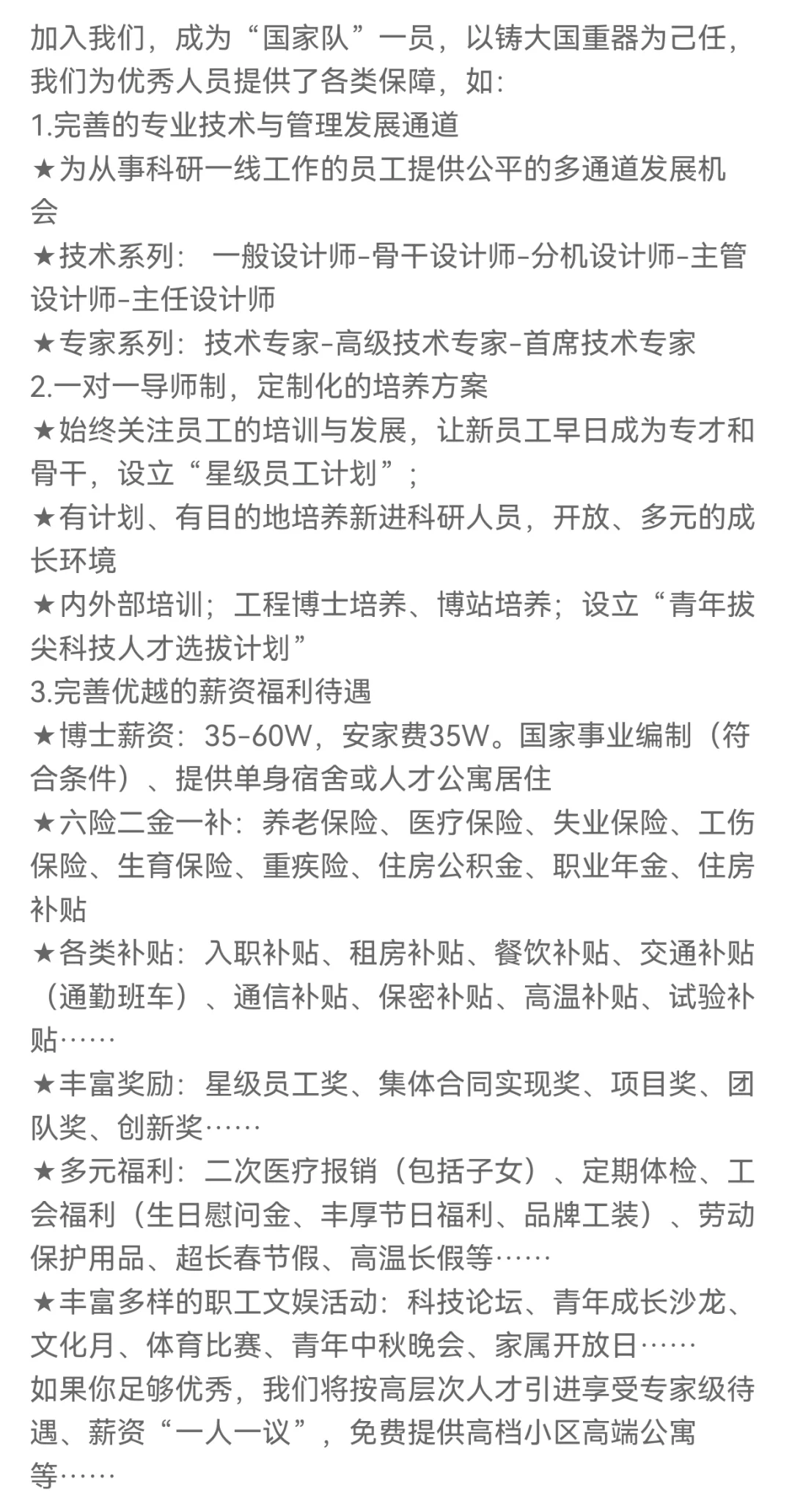 薪资待遇:博士薪资:35-60W,安家费35W。国家事业编制(符合条件)、提供单身宿舍或人才公寓居住。