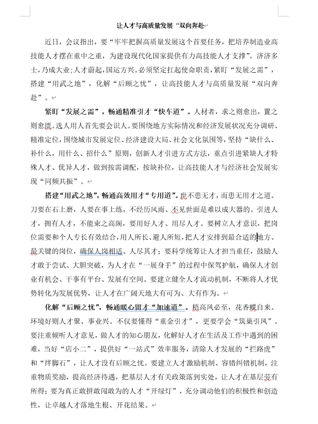 搭建“用武之地”,畅通高效用才“专用道”。世不患无才,而患无用才之道。刀要在石上磨,人要在事上练,不经历风雨、不见世面是难以成大器的。引进人才,拥有人才,不能束之高阁,要用好人才、用尽人才。要树立人才意识,把岗位需要和个人专长有效结合,用人所长、避人所短,把人才安排到最合适的地方、最关键的岗位,确保人岗相适、人尽其才;要科学统筹让人才担当重任,鼓励人才敢于尝试、大胆突破,为人才在“一展身手”的过程中保驾护航,确保人才创业有机会、干事有平台、发展有空间。要建立健全人才流动机制,不断将人才优势转化为发展优势,让人才在广阔天地大有可为、大有作为。