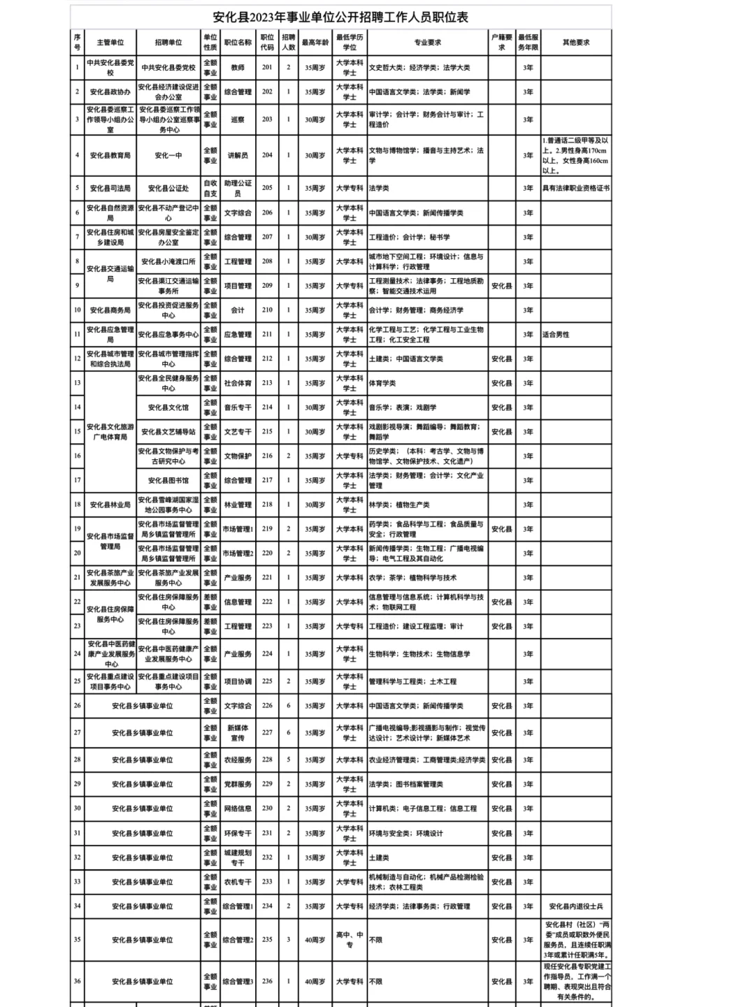 安化县2023年公开招聘事业单位工作人员公告