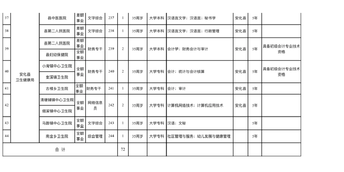 有编➕益阳安化县事业单位招聘72人