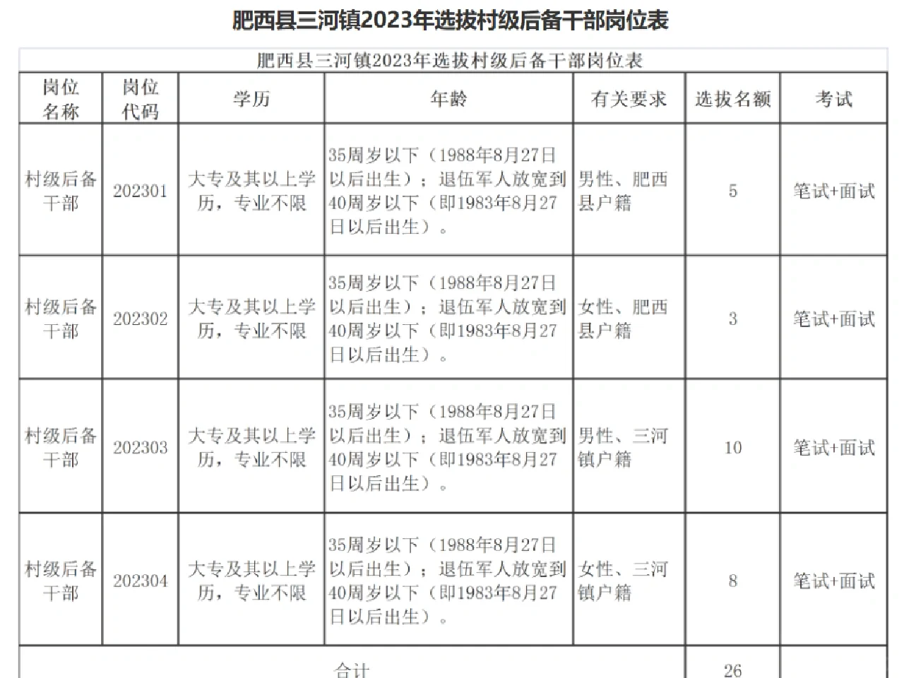 >合肥招聘❗️肥西三河镇后备干部招26人