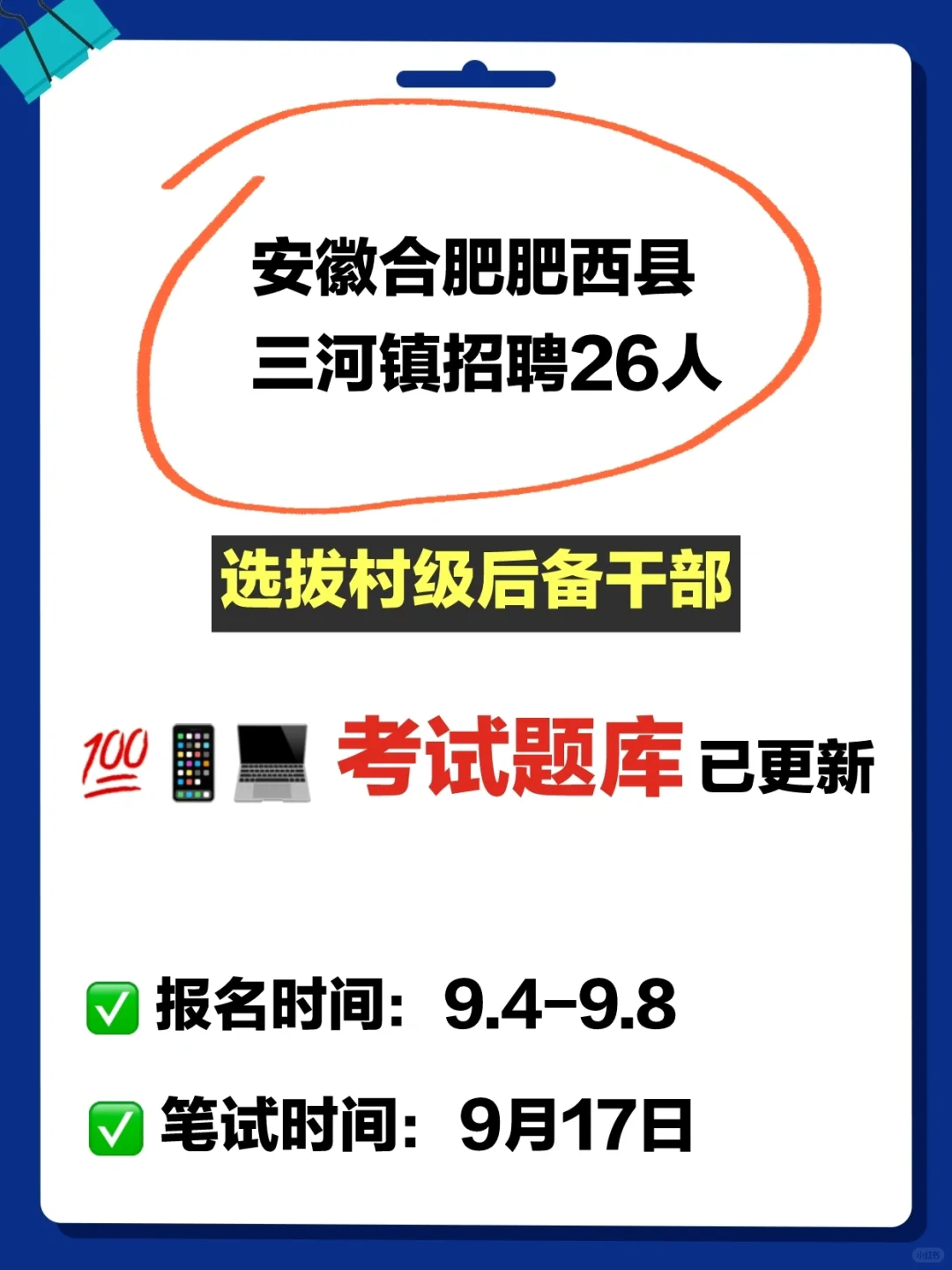 合肥招聘❗️肥西三河镇后备干部招26人