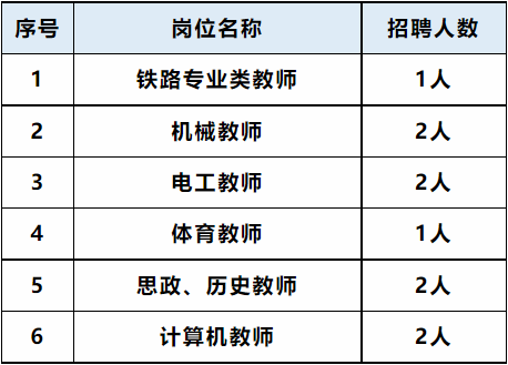 ● 具备相关技能等级证书(有教师资格证者优先录用),铁道运输类、交通工程类、电气自动化、信号控制、通信控制、通信系统、轨道交通车辆工程等相关专业;