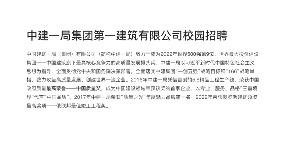 中建一局集团第一建筑有限公司校园招聘