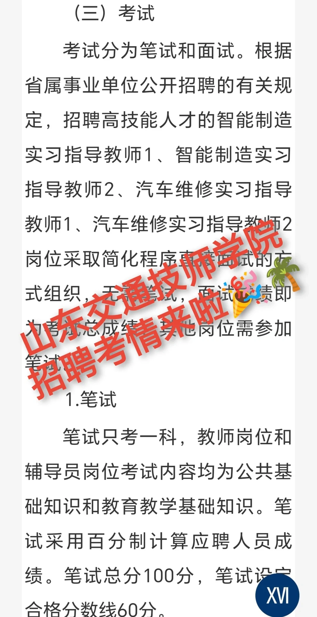 临沂|山东交通技师学院招聘 24年第三所招聘的省属高校,它来啦,在各大高校开学的前夕,它把公告发出来了,🌲🌲🌲,临沂本来公办的学校就少,这所学校一出来公告就吸引了好多同学来咨询,竞争难度不是太大。招聘本科的学校其实不是特别多,笔试没有辅导员知识,只有公基和教育知识✅✅。希望符合条件的,抓住此次上岸的机会,再等就是临沂科技和临沂大学(基本不会有教师岗)了。[汗颜R][汗颜R][汗颜R] #不想上班 #公办大专 #高校教师 #省属高校 #滨州职业学院招聘 #教师招聘 #教师编制考试 #高校行政 #高校辅导员 #硕士研究生进高校 #大学老师 #临沂科技职业学院 #山东交通技师学院 #聊城职业技术学院 #聊城技师学院 #东营职业学院 #东营技师学院 #泰山职业技术学院 |