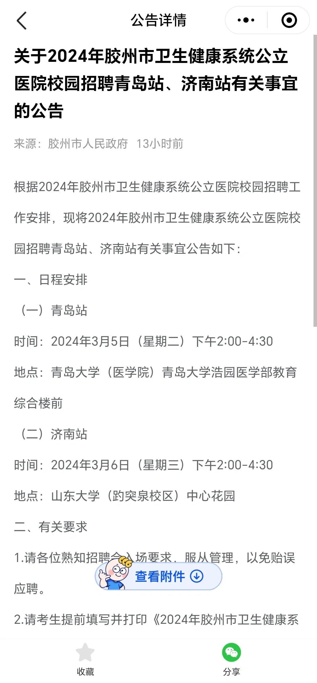 关于2024年胶州市卫生健康系统公立医院校园招聘青岛站、济南站有关事宜的公告