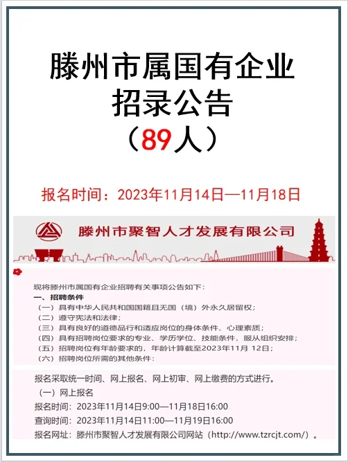 号外‼️滕州国企招录89人