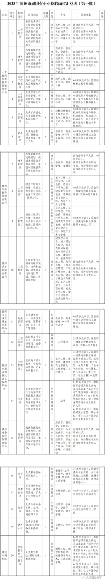 【山东丨枣庄】 | 滕州市属国有企业公开招聘54人公告
