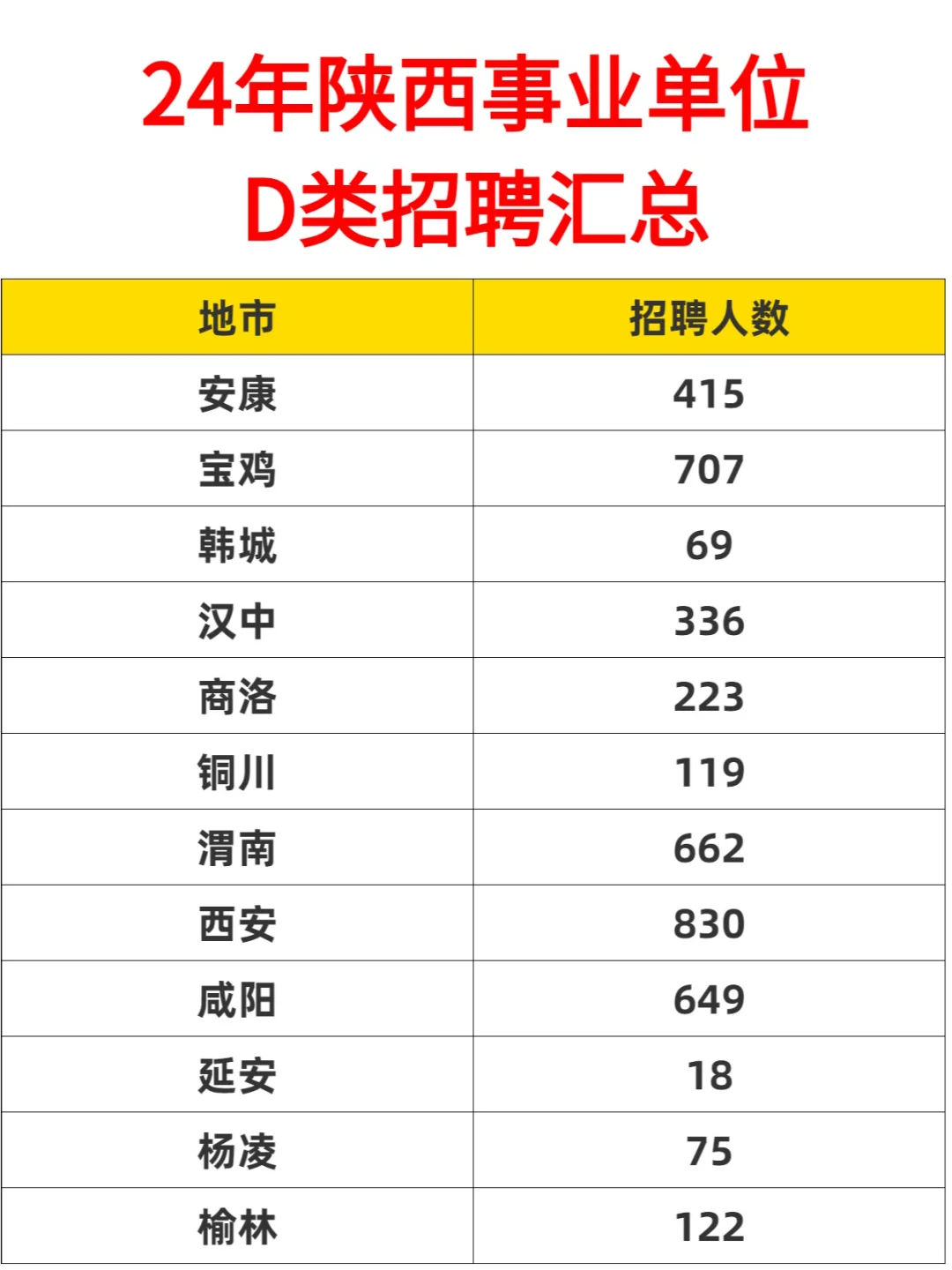 24年陕西各地市事业单位D类岗招聘人数汇总!