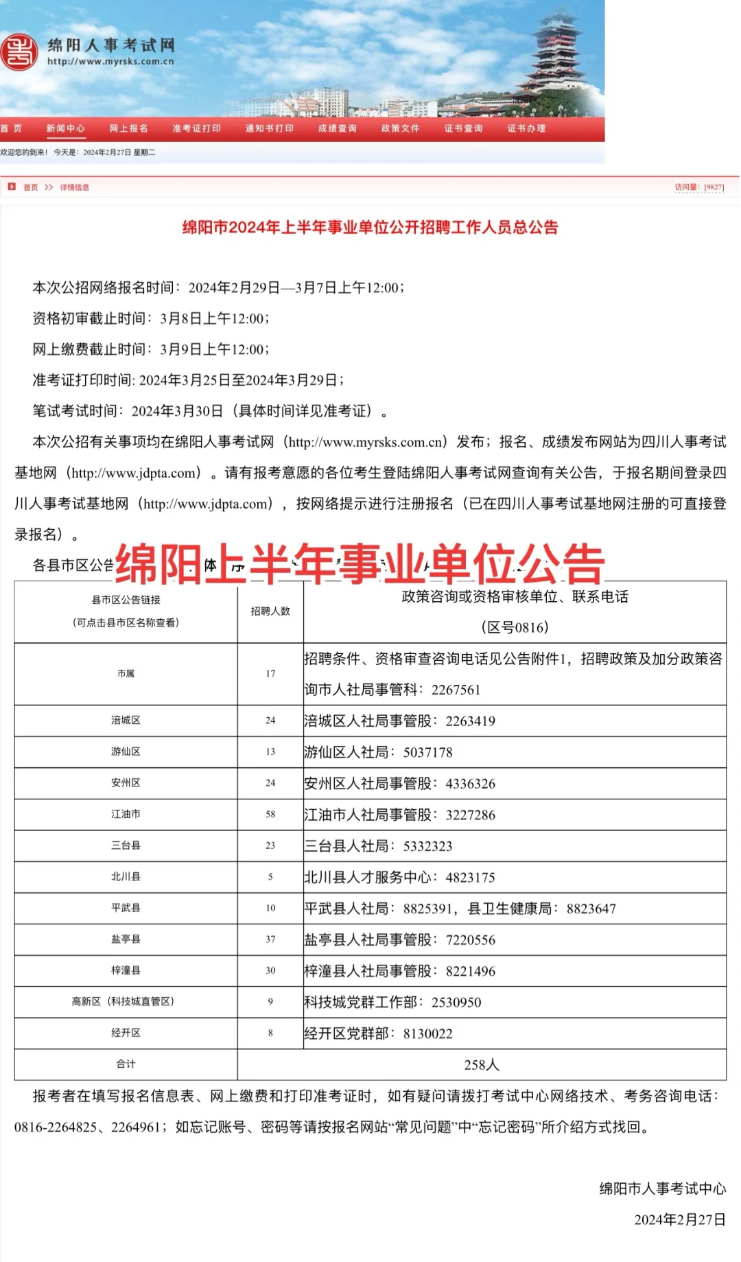 🏆#绵阳市2024年上半年事业单位公开招聘工作人员总公告http://www.myrsks.com.cn/newsDetail/10900.html